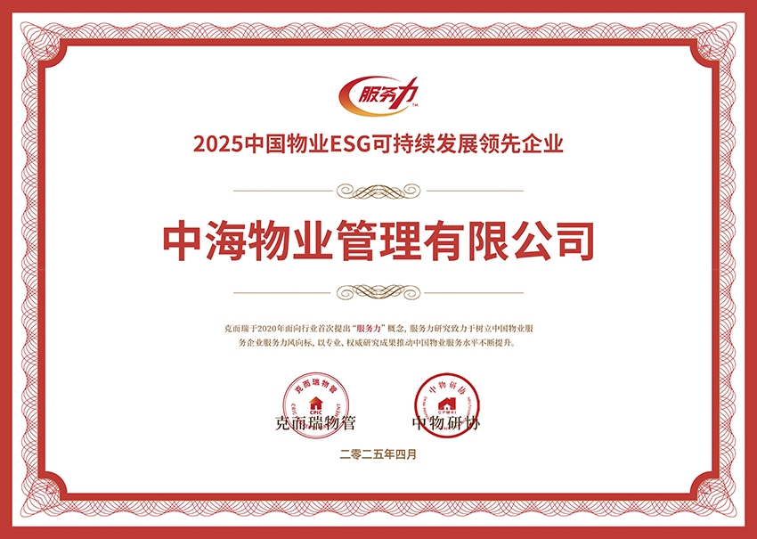 中(zhong)國(guo)物(wù)業服務(wu)ESG髮(fa)展(zhan)優(you)秀齊(qi)業 TOP1