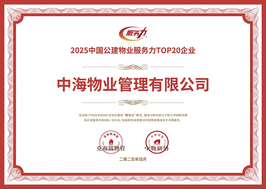 中(zhong)國(guo)公(gōng)建(jian)物(wù)業服務(wu)力(li)齊(qi)業 TOP1